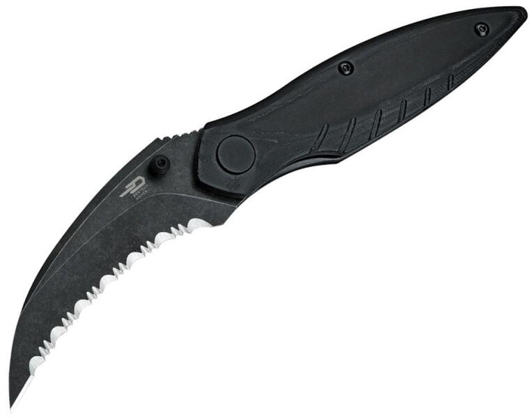 Közepes méretű zsebkés, amelyet mindennapi viselésre terveztek. A lapos élezésű 14C28N rozsdamentes acélból készült penge hossza 7,4 cm, és kerámia csapágyakon van rögzítve. Fekete stonewash pengével van ellátva. A markolat texturált fekete micarta anyagból készült a szilárdabb fogás érdekében. A kés a népszerű liner lock biztonsági zárral és egy acélkapoccsal rendelkezik a felakasztáshoz. Egykezes nyitás a pengén található hüvelykujjas szegeccsel. A Bestech Mantidae modell sajátossága az ívelt pengeforma (Hawkbill) - kiválóan alkalmas a szúrással történő vágásra, de az éles hegyet anyagok átszúrására is használhatja. A penge hátsó része tompa, így rendkívül biztonságos még akkor is, ha ujjait a penge tetején pihenteti. A kés súlya mindössze 96 g.
