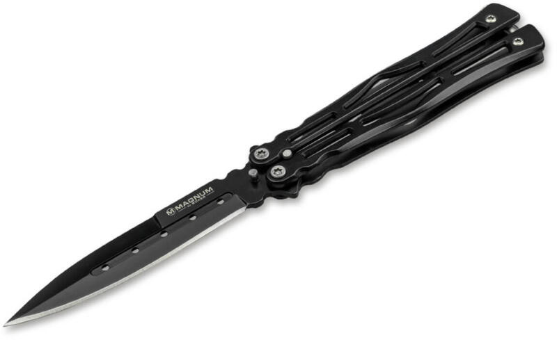 Egy egyszerű pillangokés vonzó fekete dizájnnal a Magnum by Bökertől. Penge 440-es rozsdamentes acélból, hossza 8,5 cm. Formázott fém markolat fekete felülettel. Magnum by Böker