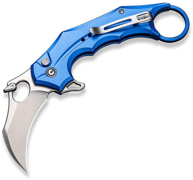 A markolat élénk kék színű alumíniumból készült, hossza 12,5 cm. A rozsdamentes acélból készült, kétoldalas (reverzibilis) Tip-Up zsebcsipesz megkönnyíti a mindennapi hordozást. A kés tömege 93 gramm, így ideális választás azok számára, akik egy könnyű, mégis megbízható taktikai kést keresnek. Kések Civivi