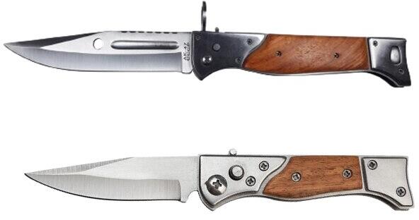Ezek az összecsukható kések kiváló darabok lesznek gyűjteményéhez vagy ajándékként egy rajongónak. Tökéletes példája az EDC (minden nap hordozó) késnek, amelyek minden helyzetben hasznosak. A klasszikus profilú penge kiváló minőségű 420 rozsdamentes acélból készül. Ez az anyag rendkívül ellenáll a sérüléseknek és magas korróziógátló tulajdonságokkal rendelkezik. Az ergonomikus fogantyú fából és fémből készült. A kés szorosan illeszkedik a kezébe, erős és stabil fogással rendelkezik. Könnyen kinyílik a kés tetején lévő csapszeggel, és a kéz enyhe mozgatásával a penge azonnal kibontakozik. Kiváló eszközök utazáshoz, kempingezéshez vagy túléléshez is. Műszaki adatok 1: Kés típusa: összecsukhatóPenge profil: klasszikusPenge típusa: sima Teljes hossz: 165 mmPenge hossza: 75 mmHajtogatott hossz: 90 mmPenge szélessége: 19 mmPenge vastagság: 2 mmSúly: 85 gPenge anyaga: 420 rozsdamentes acélMarkolat anyaga: fa + fémMegnyitás/bezárás módja: gombBiztonság a kés oldalánMűszaki adatok 2 :Teljes hossz - 22 cmPenge hossza - 10 cmFogantyú hossza - 12 cmSúly - 165 gPenge anyaga: Acél 440 CMegnyitás: automatikus bekapcsolás gombZárható penge: akadály/biztonságVédelem típusa: ujjakAz állománytól függően a hüvely eltérhet a képen láthatótól.