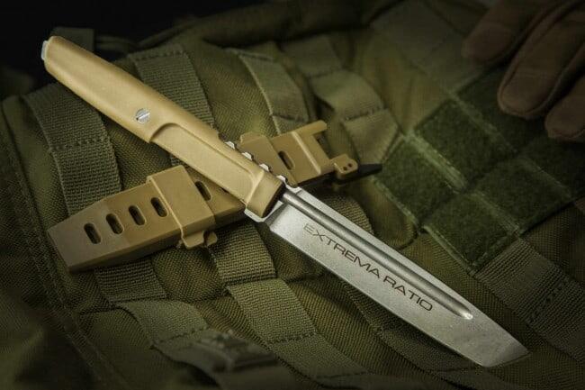 A kés egy Extrema Ratio által tervezett speciális Aspis nejlontokkal van felszerelve. A tok rendkívül gyors pengekioldással és Molle-rendszerrel rendelkezik.