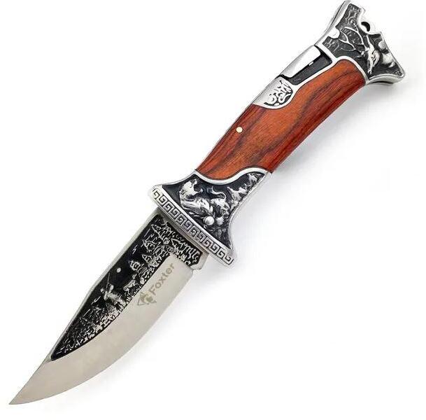 FOXTER Összecsukható túrakés, díszített NATURE, 23 cmEAN: 6938385315102 LeírásA FOXTER elhozza Önnek a NATURE díszített túrakést. 23 cm-es teljes hosszával ideális a különböző szabadtéri tevékenységekhez. Kinek szól?A kés alkalmas a túrázás, kempingezés, horgászat, vadászat és túlélés szerelmeseinek. KorhatárokA termék 18 év feletti személyeknek készült. JellemzőkFogantyú: fém és fa kombinációjaNyakkendő lyuk: IgenZárrendszer: Back-LockTeljes hossz: 23 cm