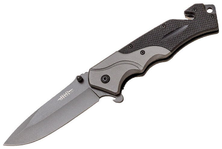 JKR PRO-10018 összecsukható kés A JKR PRO-10018 egy összecsukható kés, amely alkalmas olyan elkerülhetetlen helyzetekre, amelyek a mindennapi életben is meglephetik Önt. A JKR PRO sorozat kései a legjobb minőségű anyagokból készültek, és a legigényesebb körülményeknek is ellenállnak. A 9,5 cm hosszú, drop point alakú penge 3cr13mov acélból készül, titán felületkezeléssel. A használt rozsdamentes acélt rendkívüli kopásállóság jellemzi. A markolat fekete G10-es anyagból készült. A markolat ergonomikus kialakítású és tökéletesen illeszkedik a kézbe. A markolat hátulja szalagvágóval és üvegtörővel van ellátva, amelyek vészhelyzetekben elengedhetetlenek. A golyóscsapágyak magától értetődőek, amelyek még könnyebbé teszik a kés kinyitását. A JKR PRO modell tartalmaz egy nylon tokot és egy tisztítókendőt. JKR kések