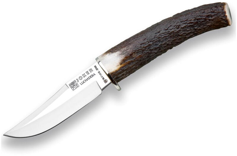 A Joker Luchadera egy vadászkés, amely elsősorban a kifogott vad feldolgozására és csontozására szolgál. Ezen kívül kiválóan használható késként természetben vagy túrázáskor. A 10 cm hosszú penge molibdén-vanádium rozsdamentes acélból készült 1.4116 . A pengének csipesz alakú csúcsa, holkeres élezésűa és matt felülete van. Szarvasagancs nyél, rozsdamentes acél újjvédő. Barna bőrtok tartozik hozzá. Kedvenc ajándék a vadásznak.