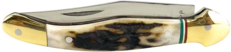 Magyar bicska kis fejes agancs markolattal (gyerek, női méret!) nemzetiszín berakással pengehossz:70mmpengevastagság: 2mmanyag: rozsdamentes acélkeménység:56-57Hrcmarkolat: szarvasagancsoldallemez:rozsdamentes ;E zt a hagyományos formájú és kialakítású kisfejes bicskát minden bizonnyal a csodaszép szarvasagancs markolata teszi igazán egyedivé. A különleges kézműves termék megbízható eszköz, fogása kényelmes és biztonságos, pengéje számos helyzetben jól teljesít. Rendelje meg online mindössze néhány egyszerű lépésben!