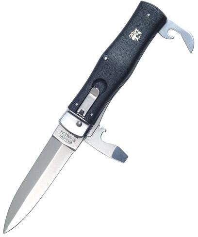 A PREDATOR zsebkés markolata műanyagból készült, markolata ergonómikus, amely tökéletesen illik a kézbe. A kés csavarhúzó biztosítékkal érkezik, luxus bőr tokban is. A pengén kívül a felszerelésben talál egy üvegnyitót, csavarhúzót, kábel csupaszító hornyot és a konzervnyitót. A kés kérésre balkezes változatban is legyártható (pótdíj nélekül). Mikov