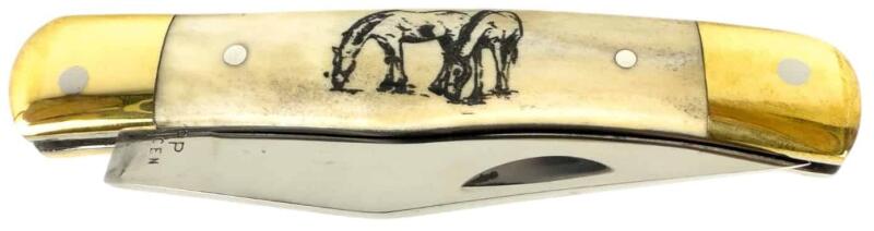 Nagymaskara csiszolt csont gravírozott motívummal (lovak) engehossz:85mmpengevastagság: 2,5mmanyag:rozsdamentes acélkeménység:56-57Hrcmarkolat: marha lábszárcsontoldallemez:rozsdamentes