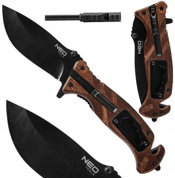 NEO TOOLS Surviva Összecsukható Kés Neo 6IN1 Taktikai Tűzgyújtó (63-107)