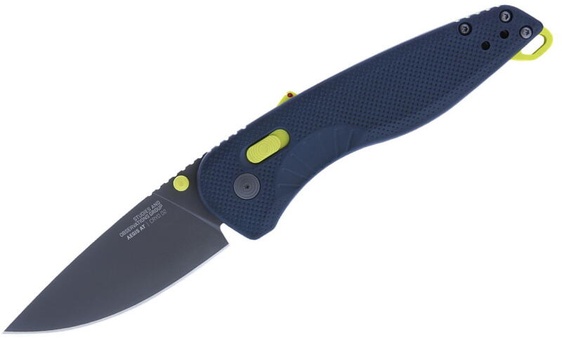 A kültéri használatra tervezett bicska, az Aegis AT kés gyors nyitási segédletet és innovatív, kétkezes SOG AT-XR zárat tartalmaz. A penge kriogénkezelt D2 szerszámacélból, lapos élezésű, 7,9 cm hosszúsággal és titán-nitrid felületkezeléssel. A markolat lila GRN-ből (erős és tartós kompozit anyagból) készülnek, csúszásmentes felülettel. Kétoldalas kapocs rozsdamentes acél kés felakasztásához. Egykezes nyitás a pengén lévő csappal. SOG kések
