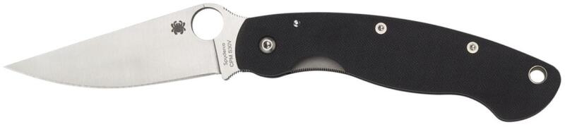 A Spyderco MILITARY zsebkés a Save and Serve program egyik alapköve, amely azután készült el, hogy a Spyderco tulajdonosa, Sal Glesser egy kérdést kapott: "Milyen hajtott késsel küldenéd el a fiadat a hadseregbe?" Ennek megfelelően a Military egy kiváló teljesítményű, könnyű és intenzív használatra tervezett zsebkés. Az acél rendkívül fontos a kés esetében, így a CPM S30V acél választása logikus, köszönhetően a hosszú távú élmegtartás és a rozsdaállóság hírnevének. A 'Millie' egy módosított klipsorú pengével rendelkezik, amely lézerrel készült, és 14 mm-es Spyderco kerek lyukkal van ellátva a gyors kioldás érdekében, még kesztyű viselése mellett is. A lyuk feletti textúra biztosítja, hogy a hüvelykujj a penge hátoldalán maradjon vágás közben, így biztosított a stabilitás az éles él felett. A fogantyú G-10-ből készült, és a zár mechanizmusa közvetlenül a fogantyúba van beágyazva, így növelve a zár erősségét anélkül, hogy bulky borítások szükségesek lennének. Az elválasztók a fogantyú pikkelyei között olyan teret hoznak létre, amely az egész hosszúságban láthatóvá teszi a belső mechanizmusokat az ellenőrzés és tisztítás érdekében. A fogantyú eleje kissé kiszélesedik, amely ujjfekvést biztosít, míg a végénél lévő kialakítás megakadályozza a kés elcsúszását a kézben vágás közben vagy keményebb vágások végrehajtásakor. A fekete fém klips a jobb kéz számára, kérgek lefelé történő hordására van beállítva.