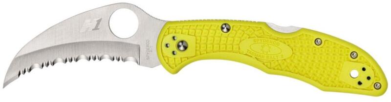 A Spyderco Tasman Salt 2 egy második generációs zsebkés, amely a hawkbill (sólyomszerű) pengeprofil, az ultra korrózióálló H-1 acél és a fejlesztett injekciós forma tervezése lenyűgöző ötvözete. Ez az eszköz ideális olyanok számára, akik víz közelében dolgoznak. Kapható sima vagy teljesen fogazott vágóélekkel, a Tasman 2 ívelt pengéje "megragadja" a vágott anyagot, és a konkáv él felé irányítja azt, hasonlóan egy állati karomhoz. Ez a dinamika rendkívüli vágásteljesítményt eredményez, különösen szálas és nehezen vágható anyagok, mint például hálók, zsinórok, hevederek és kötelek esetén. A penge egy továbbfejlesztett markolaton helyezkedik el, amely a Spyderco bestsellere, a Delica 4 alapjaira építkezik. Az üvegszálas erősített nylon (FRN) markolata rendkívül könnyű és ellenálló, elérhető sárga vagy fekete színben. A markolat jobb ergonómiával, kétirányú csúszásmentes textúrával és többféle pozícióban rögzíthető titán zsebkábel-clippekkel rendelkezik. Az ergonomikus formatervezés emellett egy robusztus hátsó zármechanizmussal is rendelkezik, amely biztonságosan rögzíti a pengét használat közben.