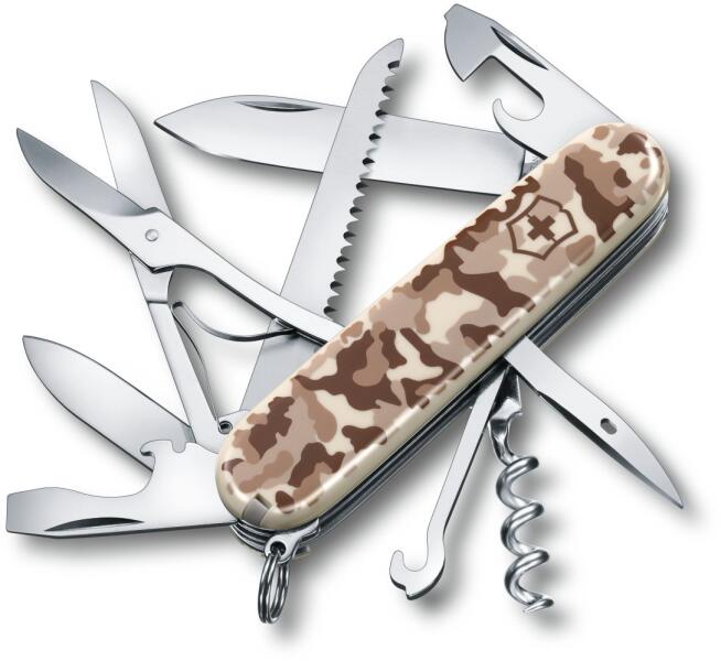 A Victorinox Huntsman további kés a Swiss Army Knife szériából. A kés mérete 91 mm és súlya 97 g. Markolatának a két oldala a sivatagi álcázás színében. 15 funkciót tartalmaz: