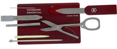 Többfunkciós szerszámkészlet, vörös, átlátszó, SwissCard